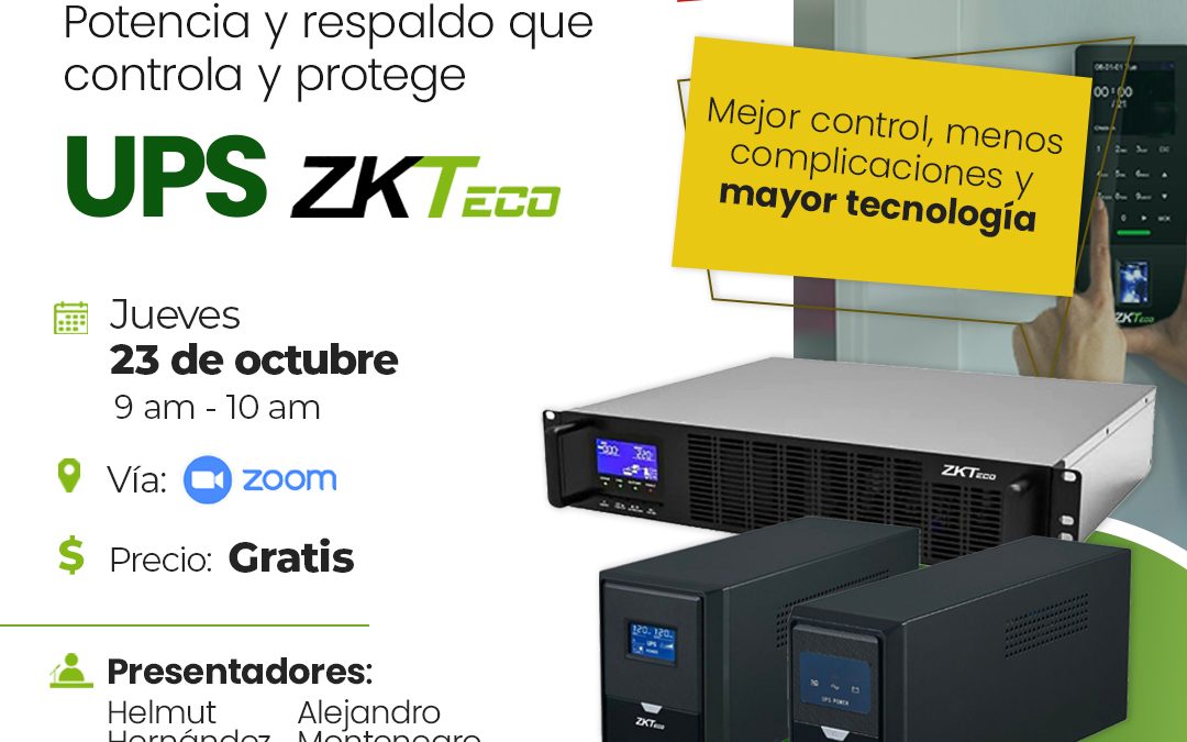 Webinar – UPS ZKTeco by Carlos Quinteros | Oct 23, 2025 | Acceso, Alarmas, Parqueo, Seguridad perimetral, Tiempo y Asistencia ¿Cuándo? octubre 23, 2025 9:00 am - 10:00 am Add To Calendar Download ICS Google Calendar iCalendar Office 365 Outlook LiveReserva Bookings closedProducto AccesoAlarmasParqueoSeguridad perimetralTiempo y Asistencia ReservaLas reservas están cerradas para este evento.